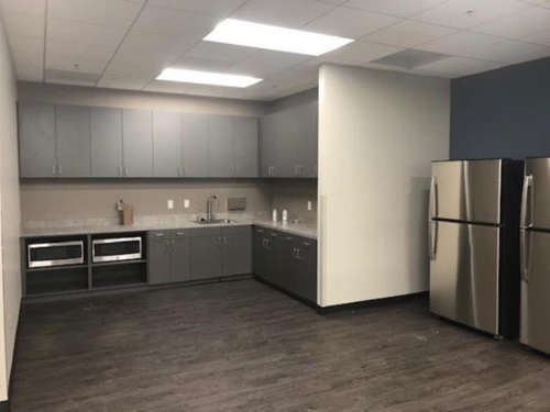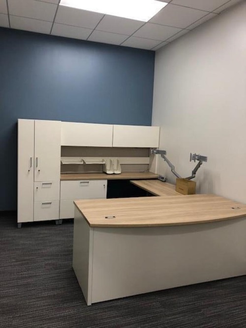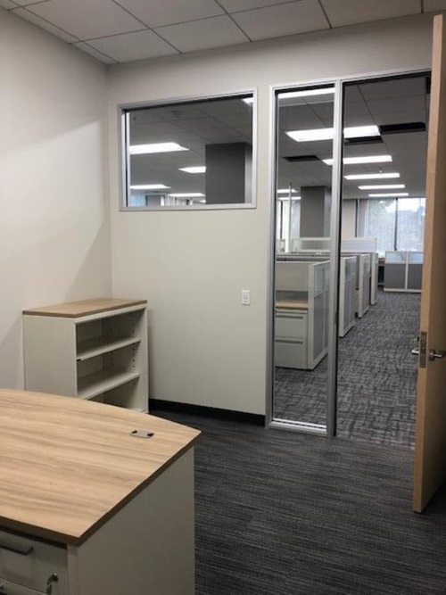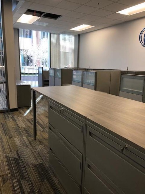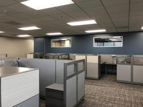 • Modern office environment utilizing natural light, low partitions cubicles and collaborative areas.
