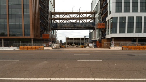 Ground level view of Richards Boulevard building construction from July 2022 -